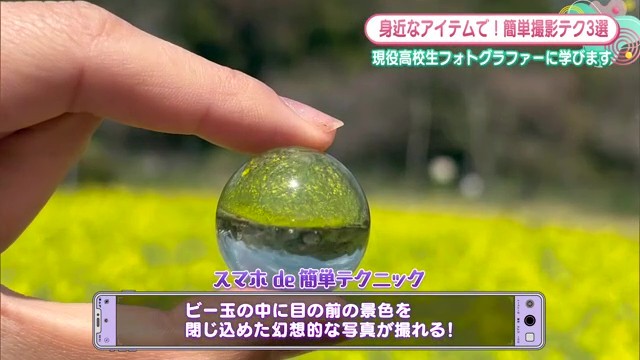 3つ目のテクニックは、ビー玉を使った撮影です。Tomoyaさんは「全ての季節が集まったような写真が撮れます」と説明します。