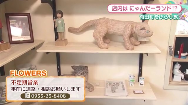 焼き物の町として知られる有田町に、心温まる雑貨店があります。「FLOWERS」と名付けられたこの小さなお店には、ネコをモチーフにした可愛らしい小物がずらりと並び、有田焼の陶器から木彫りの置物まで多彩なアイテムが揃っています。