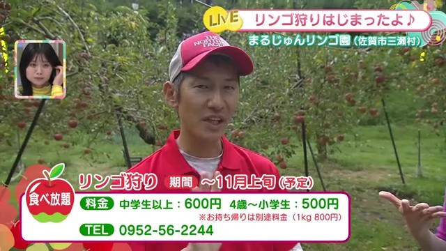 秋の訪れとともに、佐賀市三瀬村の山間部でリンゴ狩りシーズンが到来しました。48年という長い歴史を誇る「まるじゅんリンゴ園」では、8月31日からリンゴ狩りがスタート。家族連れやカップルで連日賑わいを見せています。