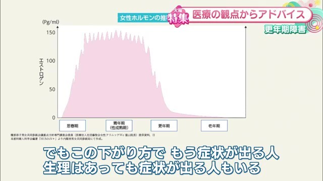 「必ずしも月経が止まる止まらないというのは目安になりません。ホルモンがある程度下がらないと月経は止まりませんが、この下がり方でも症状が出る人がいます。生理があっても症状が出る人がいるんです」