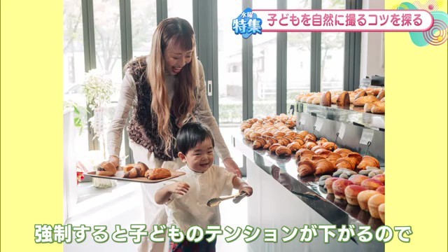 撮影を担当するのは、佐賀市内で写真スタジオを営むオーナー兼カメラマンの外尾さん。撮影が始まると、外尾さんは子どもに「チョコのパン選ぶ?探し行こう」と自然に声をかけます。カメラを構えながらも、子どもがやりたいことを邪魔しない姿勢を貫いていました。
