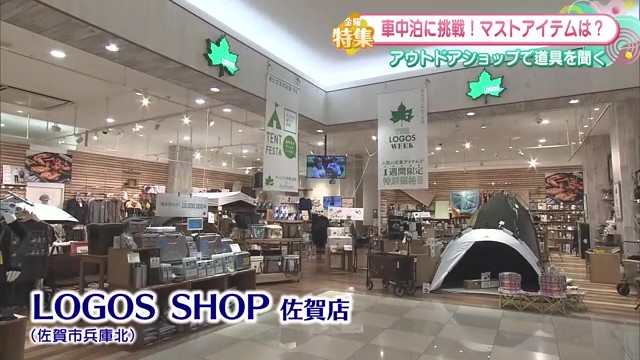 まず向かったのは、アウトドアショップ「ロゴス佐賀店」。車中泊グッズを求める客が増加しているというこの店で、必要なアイテムを調査しました。