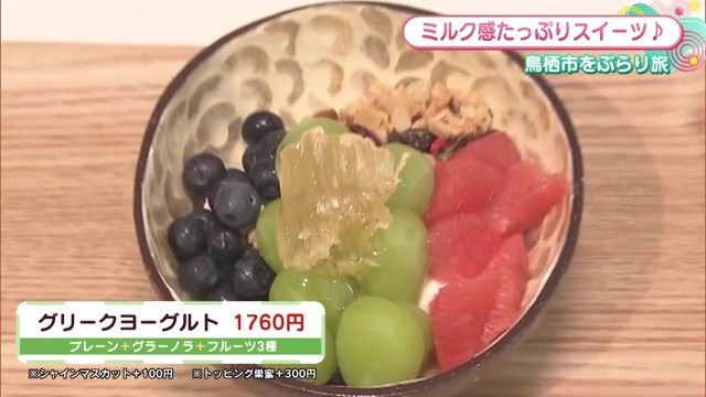今回いただいたのは、「プレーン+グラノーラ+フルーツ3種」の組み合わせで、さらにシャインマスカットを追加(+100円)したり、トッピング巣蜜(+300円)を加えたりすることも可能です。