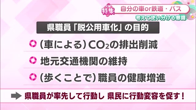 利用の意識変化について、「近い距離でもバスや電車使う職員が増えてきているし、意識をまず持ってもらうことが第一歩なのかなと思っています」と、意識改革の重要性を強調しています。