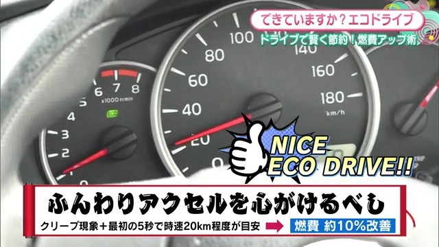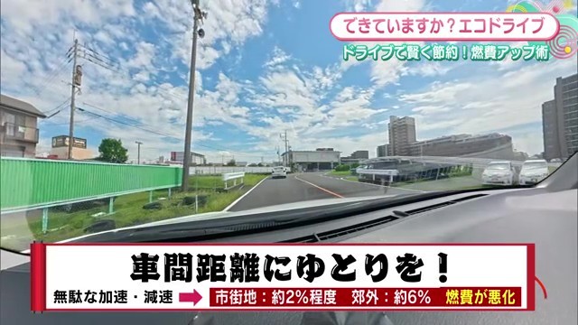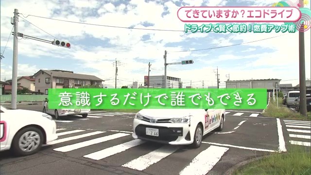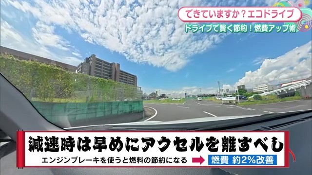 佐賀城北自動車学校で、燃費アップ術に詳しい東島先生による実技チェックを受けたリポーターは、運転技術としては良かったものの、「エコドライブとしては10点満点中で5点」という厳しい評価を受けました。