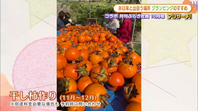「ぐらんぴんぐ火風水土」では、季節ごとに異なる多彩な体験プログラムも用意されています。春から夏にかけては畑での農業体験、秋にはしいたけ狩り、冬には干し柿作りなど、宿泊しながら佐賀の豊かな自然と触れ合える機会が満載です。