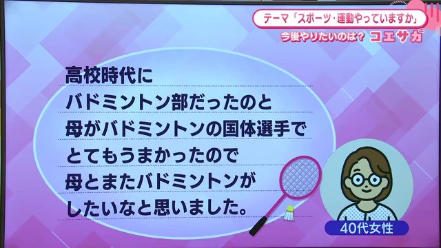 今後やりたいスポーツとして複数回答があった「バドミントン」について、詳しく理由を聞いたところ、心温まるエピソードが明らかになりました。