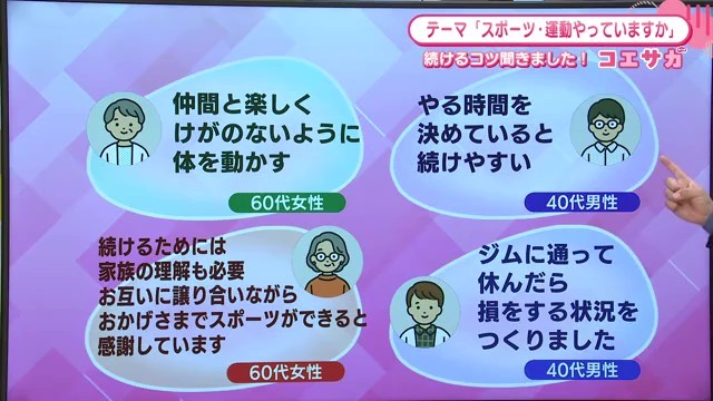 リポーターは「意外かもしれませんが、やっている方が半分もいらっしゃいました」とコメントし、県民の健康意識の高さに驚きを隠せない様子でした。