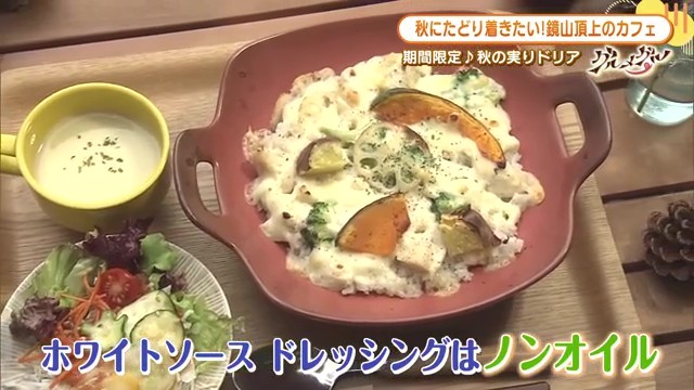 この季節だけの特別メニュー「秋の実りドリア」は、秋野菜をたっぷりと使用したこだわりの一品。コロコロとした野菜がふんだんに入っており、見た目にも彩り豊かです。
