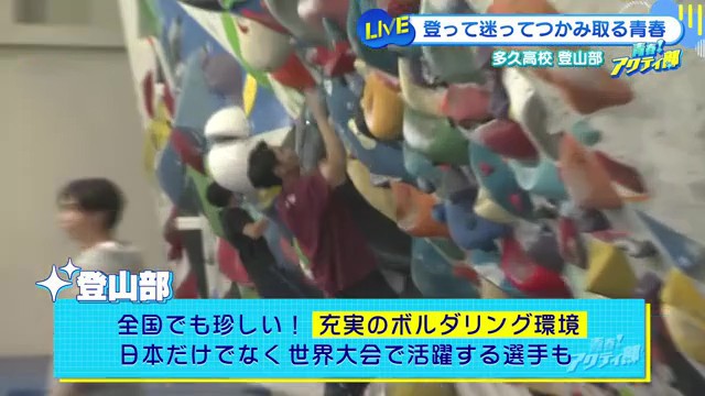 同部の魅力は県外からも注目を集めており、岡山県から入学してきた生徒もいます。その生徒は入学の理由について、「中学生時代からスピードクライミングをしていて、高校でもスピードクライミングを続けたいと思っていた時に、特にスピードクライミングの壁とか、日本最大規模のクライミング施設ができると聞いて、多久高校に行きました」と語っています。