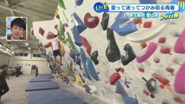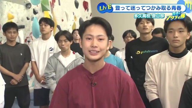 「高校から始めたってことですか?」というリポーターの問いに、ある部員は「はい、そうです」と答えます。初心者でも始められるのがクライミングの魅力の一つ。努力次第で上達できることが分かります。