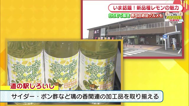 璃の雫は種もほとんどなく果汁が多いため、加工品にも最適です。道の駅白石では、サイダーやポン酢など璃の雫関連の商品が数多く販売されています。