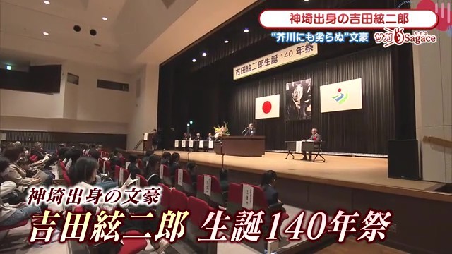 11月24日の生誕140年祭には、西郷小学校、神埼中学校、神埼高校の児童生徒が参加し、吉田絃二郎にまつわる合唱や朗読、劇などを披露しました。