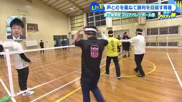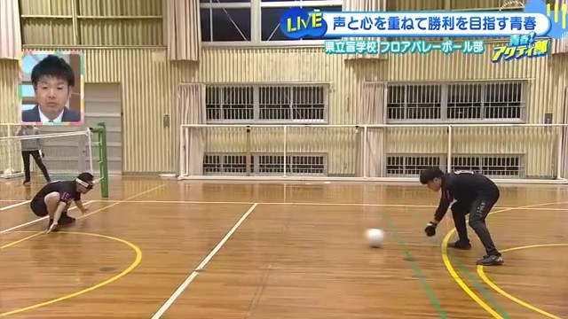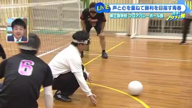 「視覚障害者と健常者が一緒に楽しむことができるバレーボール」だと説明する草場さん。「ルールとかコートの広さ、通常のバレーボールと全部一緒なんですけど、違うのがネットの下30cmでボールを転がしてプレイするところ」が最大の特徴です。