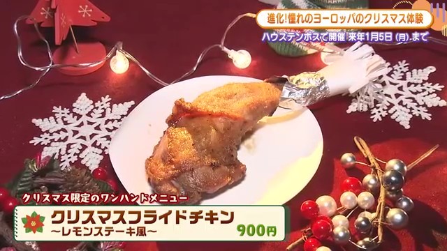 「クリスマスといえばチキン」ということで、まさにクリスマスらしいメニューです。揚げたてで提供され、「パリパリで美味しい。揚げたてだからやっぱり食感が楽しい」とリポーターも絶賛。