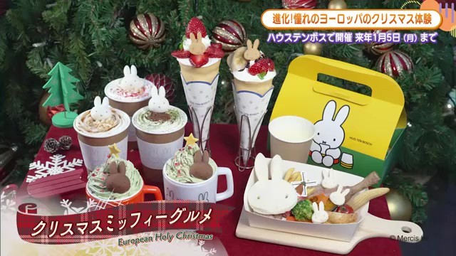 クリスマス装飾が可愛いお部屋でサンタさんと触れ合ったり、一緒に写真が撮れる「サンタグリーティング」も開催されています。さらに、ミッフィーのクリスマス限定グルメや、九州初上陸となる「ディック・ブルーナ テーブル」との期間限定コラボカフェ&バーも登場し、今だけの特別なイベントが盛りだくさんです。