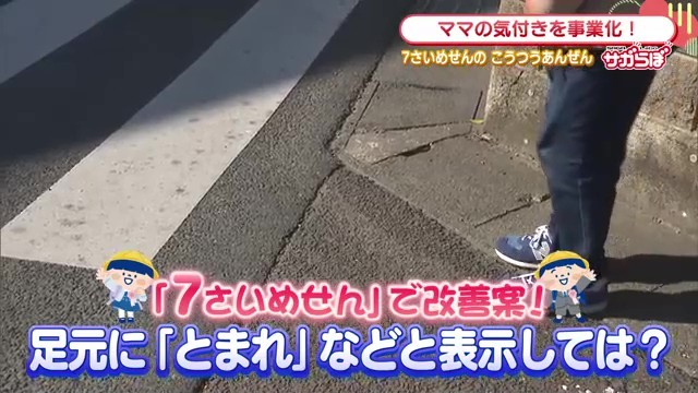 横断歩道前での安全対策にも工夫が凝らされています。「標識になると、結構高い位置にあるので、子供の目線から見ると、認識できないものになってくる」という課題に対して「足元とかに止まれっていう表示がしてあったら少し止まりたくなるかな」という対策が検討されています。