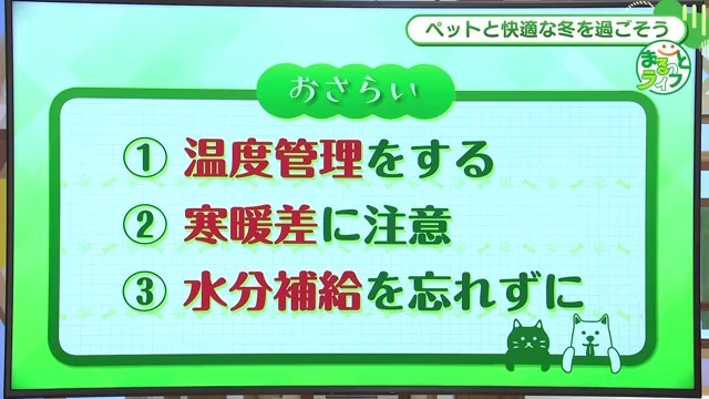 愛するペットと快適な冬を過ごすために、番組でまとめられた重要なポイントは以下の3つです。