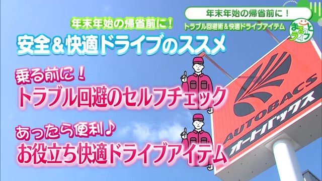 「何かと車を使う車社会の佐賀県にとって、年末年始の長距離運転や冬ならではのトラブルは気になるところです」とリポーターが訪れたのは、オートバックス佐賀大和インター店。環境に配慮したグループ初の木造店舗としても注目されているこの店舗で、野田店長に年末年始に備えた愛車メンテナンスについて詳しく話を聞きました。
