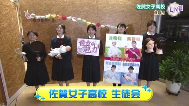生徒会長を含む5人のメンバーは、「実技や専門の授業は大変ですが、同じ夢を持つ仲間がいるから頑張れます」と話します。調理器具や赤ちゃん人形、ウィッグ付きマネキンヘッドなど、各学科を象徴する道具を手に、将来の目標を具体的に描いていました。
