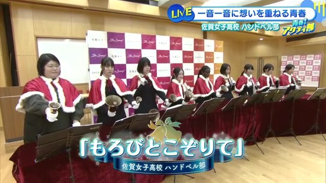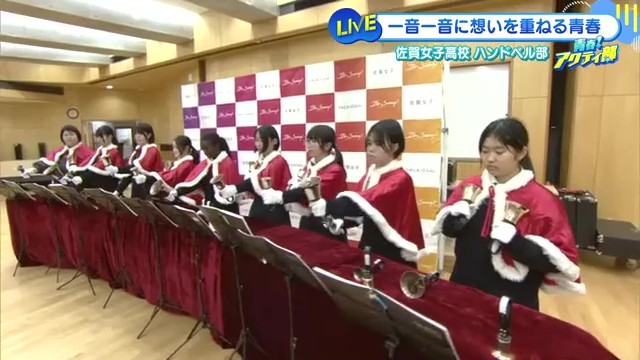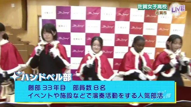 佐賀女子高校には、運動部と文化部を合わせて26個の部活動と3つの同好会があります。その中でも、ハンドベル部は創部33年の歴史を持つ伝統ある部活動です。現在の部員は8人。特にクリスマスシーズンには、演奏依頼が相次ぐ“引っ張りだこ”の存在です。