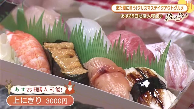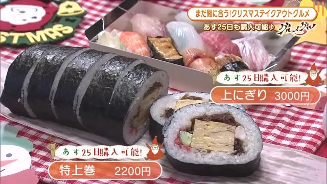 鮨処寺田では、「特上巻」「にぎり」ともに、クリスマス当日の25日も購入が可能です。※売り切れの可能性もあり