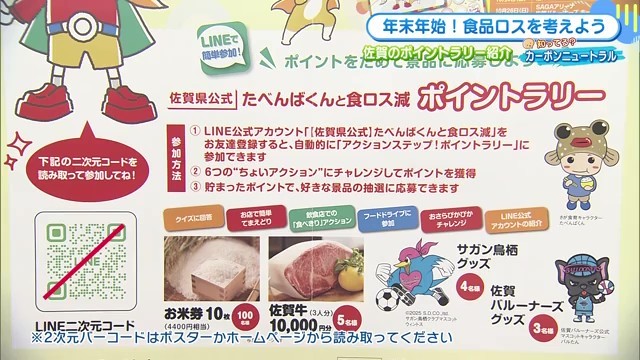 県の担当者は「このポイントラリーに参加していただくことで、日常の中で身近にできるちょっとした食品ロスのアクションをやっていただく。ポイントを貯めていただいたら抽選で、豪華な景品もゲットできるチャンスですので、皆さんぜひこのLINE登録をお願いします」と参加を呼びかけています。
