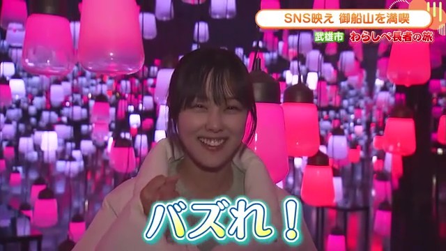 到着すると、まず目を奪われるのがピンクや紫の美しい灯籠が天井から吊るされた幻想的なロビー空間です。「インスタ映えよ」とリポーターも思わず感嘆するほど美しく、まるで異世界に迷い込んだような非日常感を演出しています。