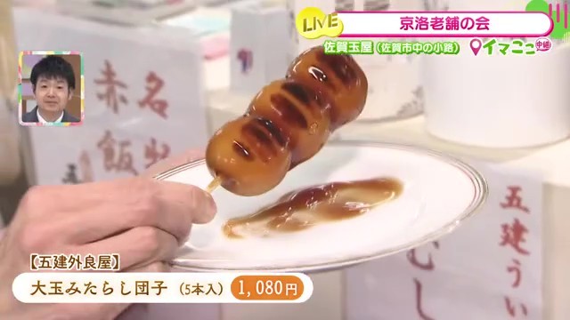 実演販売で話題を呼んでいるのが「五建外良屋」の大玉みたらし団子です。「ピンポン玉ぐらいあります」と驚きの大きさで、店主によると「1つ1つが大玉になっています。食べごたえがございます」とのこと。