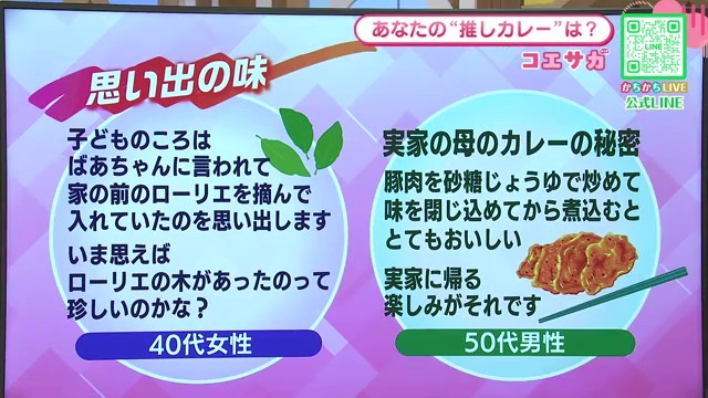 1月22日は「カレーの日」をご存知でしょうか。1982年のこの日、全国の学校給食で一斉にカレーが提供されたことが由来となっているこの記念日に合わせて、佐賀県内の視聴者から「推しカレー」についてアンケートを実施しました。驚異の98%が「好き」と回答したカレーは、まさに国民食。「ナッチーカレー」から「大根カレー」まで、ユニークな推しカレーと家族の思い出が詰まった秘伝の味、そして佐賀県内の絶品カレー店4選をご紹介します。