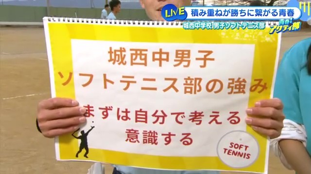城西中学校男子ソフトテニス部の強さの秘密は、独自の指導方針にあります。部員の一人は「自分で考える・意識することです」と説明します。