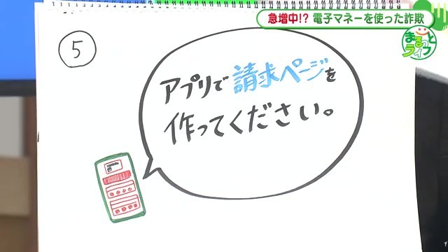 番組では、実際の詐欺がどこまで進行するかを絵で再現しました。リポーターが被害者役となり、詐欺の全貌を体験しました。