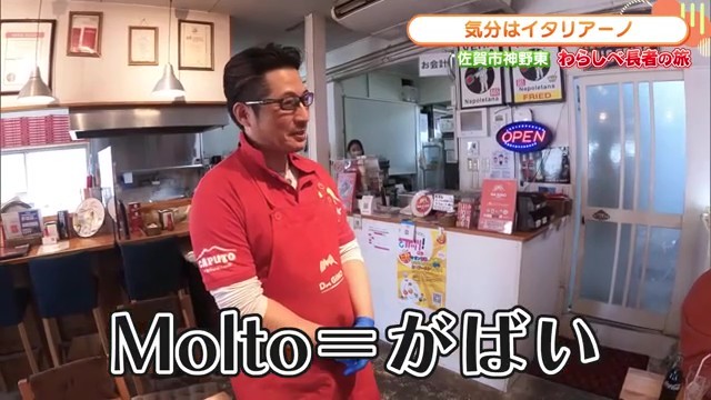 食事中には自然とイタリア語が飛び交います。「モルトボーノー」(とても美味しい)という表現に対して、リポーターは佐賀弁で「ガバウマか」と翻訳。このユニークな文化交流も、このお店ならではの魅力です。