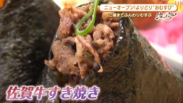 さがびよりを贅沢に使ったすき焼きおむすびも見逃せません。リポーターが「お肉とろけるし、お肉の甘みがとてもいい」と絶賛。「思いっきり具材を食べた思ったら、まだ中に入ってる。こんなうれしいことありますか?」と、満足そうに語っていました。