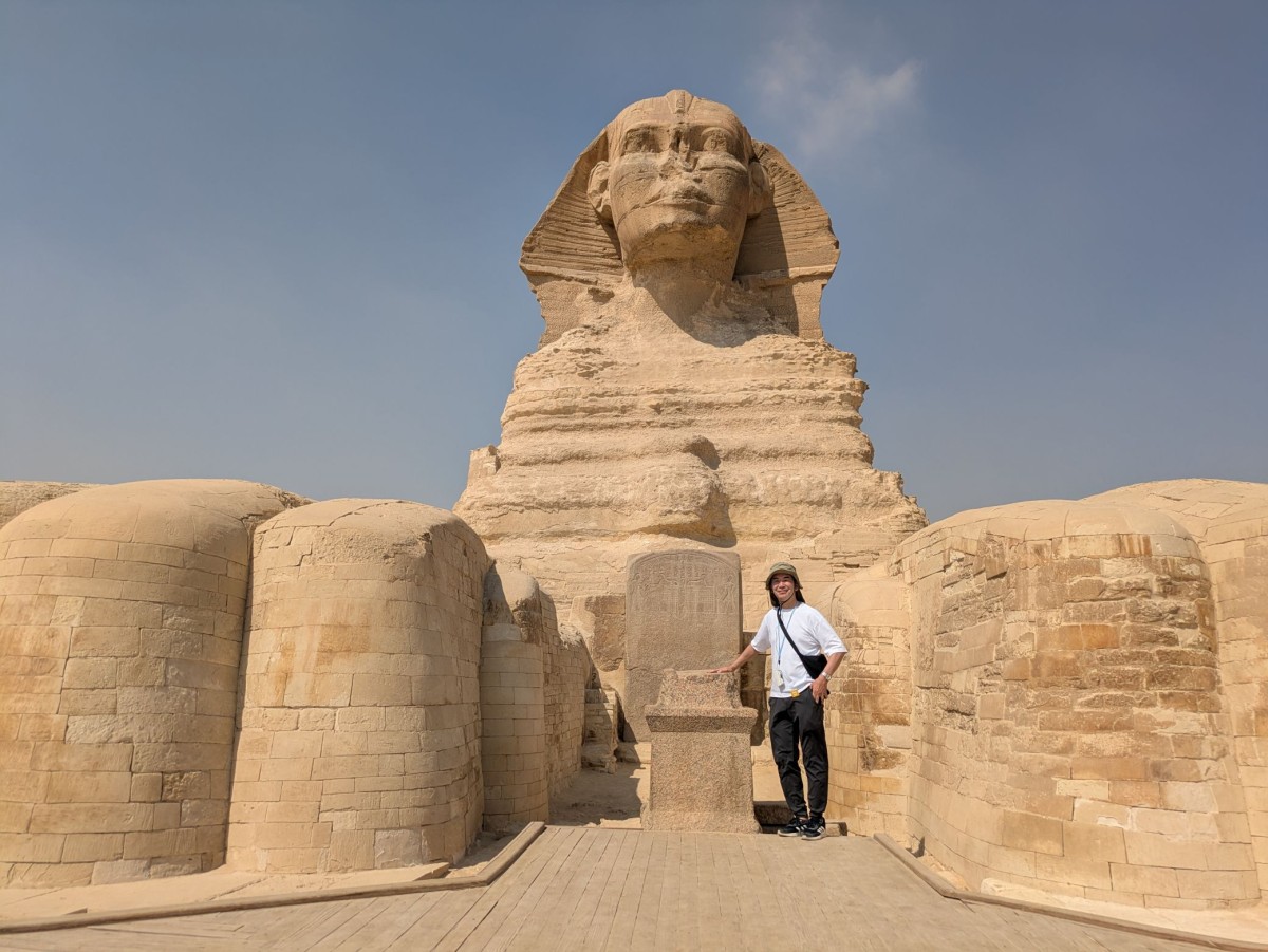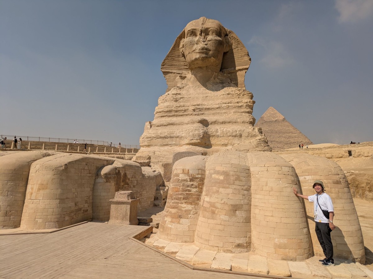 今回のツアーではスフィンクスのすぐそばの特等席で見ることができました。