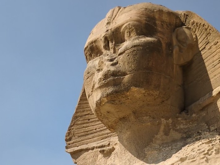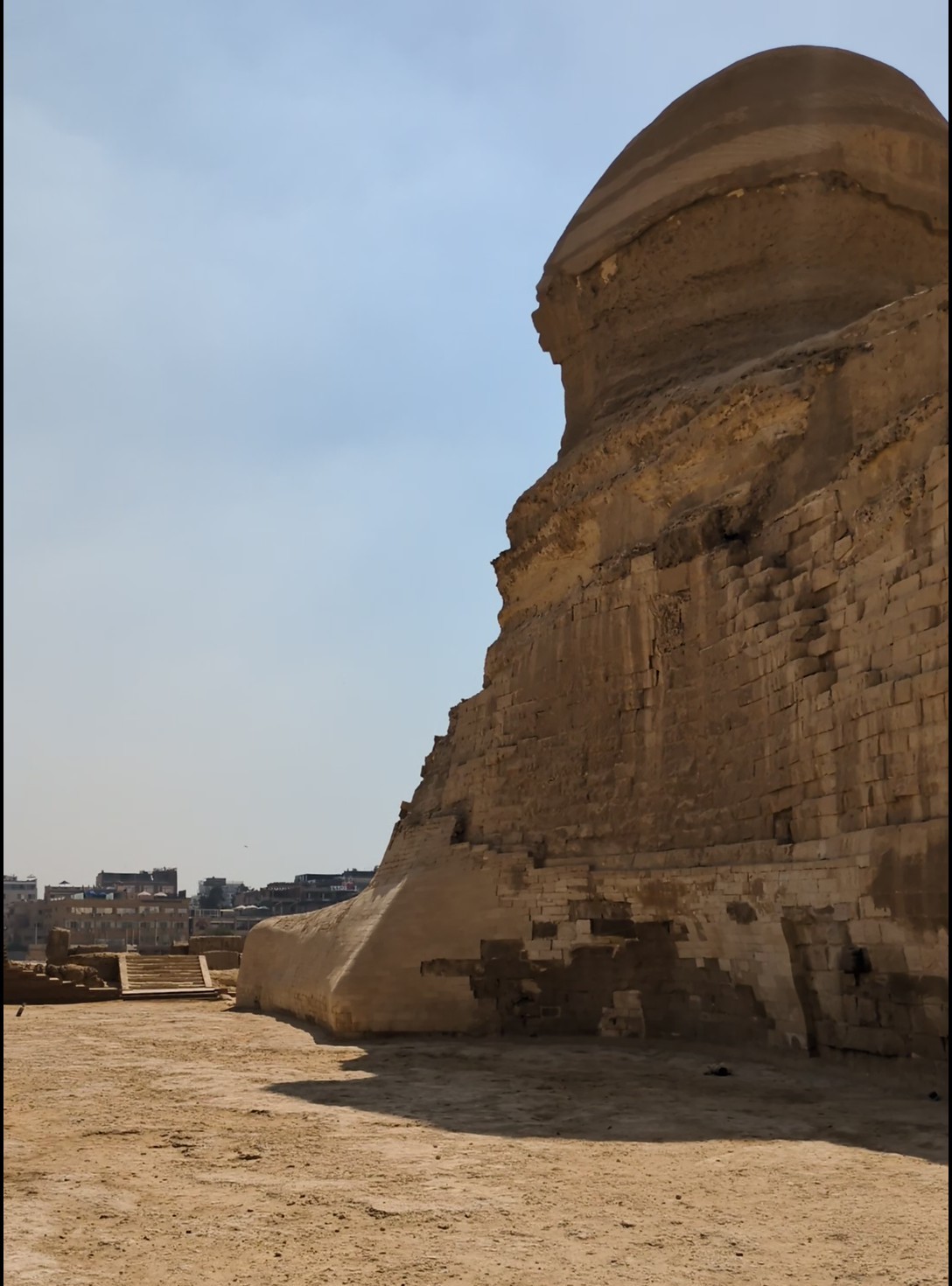 スフィンクスの顔は、過去に壊されたとされ(自然の風化も)、鼻が欠けた状態です。