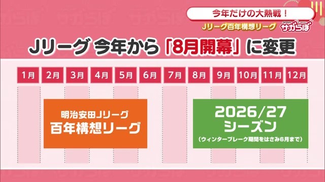 Jリーグはこれまで2月開幕12月閉幕でしたが、今年から8月開幕6月閉幕へと大幅に変更されました。この変更により生まれた空白期間を埋めるのが「Jリーグ百年構想リーグ」です。