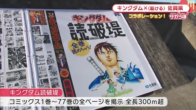 佐賀空港は一時的に「佐賀キングダム空港」と名称を変更し、干潟よか公園には全長300メートルを超える「読破堤」が登場するなど、県内各地でキングダム一色の特別企画が展開されています。
