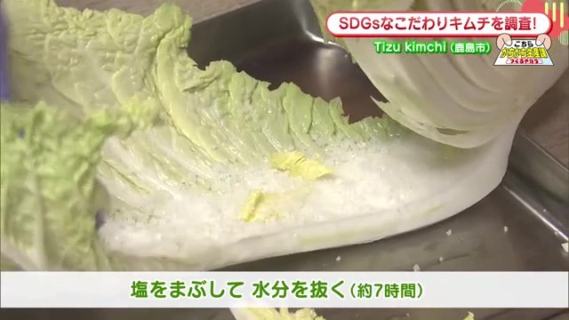 Tizu kimchiのこだわりは、素材選びから始まります。白菜の塩漬けには韓国産の塩を使用。「日本の塩よりも甘みがある」という韓国産の塩で、白菜をしっかりと7時間かけて塩漬けし、水分を抜きます。