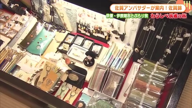佐賀錦の魅力は、雛人形だけにとどまりません。館内にはがま口やペンケースなど、日常使いできる佐賀錦の小物類も展示・販売されています。リポーターが手に取ったペンケースは、黄金色に輝く佐賀錦の美しさを日常の中で楽しめる逸品。「黄金に光るようなもの」と紹介されたとおり、どの製品も職人の技が随所に光る仕上がりとなっています。