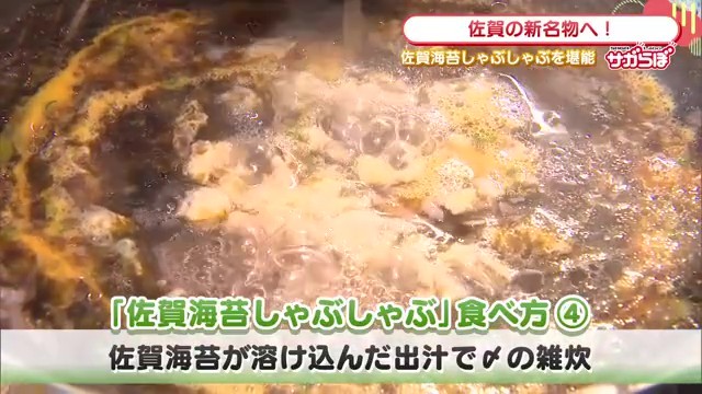 二つ目は、のりそのものをお肉のようにしゃぶしゃぶする、このメニューならではの食べ方です。出汁と塩・こしょうベースで試したリポーターは「佐賀のりだけでごちそうです。のりの風味と香り、出汁にほどけるとろけた食感を塩・こしょうと出汁が見事にアシストしてくれる。驚きがすごかったです」と大絶賛していました。
