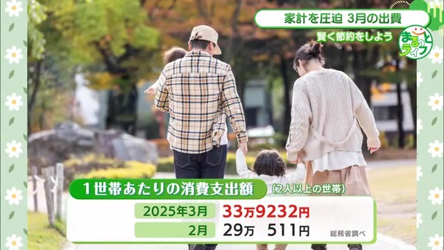 総務省が今年2月に発表した「家計調査」によると、昨年3月の消費支出額は1世帯あたりおよそ34万円。2月の29万円と比べて5万円も支出が増加しています。この数字を見ると3月がいかに家計に負担をかける月であるかがよく分かります。