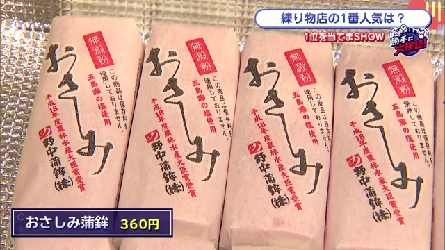 店の看板商品のひとつが「おさしみ蒲鉾」(360円)です。